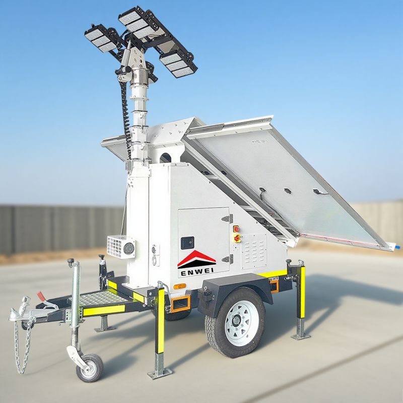 移動式ソーラー照明トレーラーは、優れた耐久性と適用性を持っています。移動式ソーラー照明トレーラー全体は、7メートルの電動マスト、単結晶ソーラーパネル、ゲルバッテリー、冷間亜鉛メッキマスト、耐摩耗性タイヤ、トレーラーシャーシで構成されており、移動式ソーラー照明トレーラーの全体的な使いやすさを保証します。